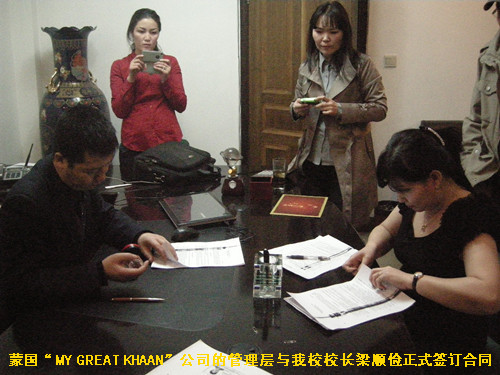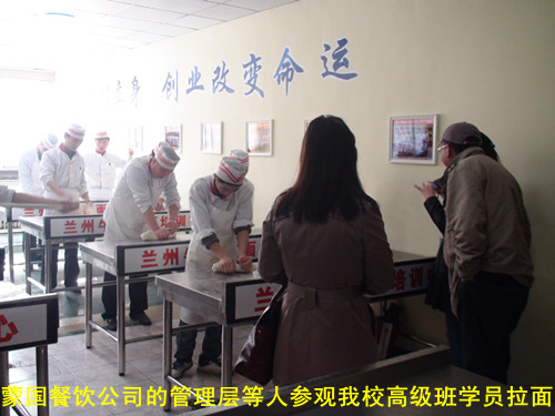 蒙國“MY GREAT KHAAN”有限責任公司管理層攜翻譯共六人,于2012年3月11日專程從蒙國來到中國蘭州參觀考察、蘭州餐飲企業文化、引進蘭州牛肉拉面人才,蘭州牛肉拉面培訓中心校長梁順儉先生接待洽談,隨后的幾天里,“MY GREAT KHAAN”公司的六人分別參觀了我公司下屬的蘭州牛肉拉面培訓中心及下屬的蘭州金味德牛肉拉面各連鎖店,蘭州餐飲市場,互相交流經驗以洽談項目合作。最終,“MY GREAT KHAAN”公司與蘭州牛肉拉面培訓中心達成協議,蒙國委托蘭州牛肉拉面培訓中心為他們培養拉面人才,并且與我中心建立長期合作關系,向蒙古國輸送拉面人才。2012年3月15日蒙國“MY GREAT KHAAN”有限責任公司與我公司總經理梁順儉先生正式簽訂蘭州拉面人才輸送協議,首批拉面師于3月底前赴蒙古國上班。