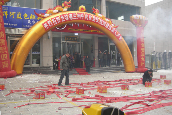 2012年12月2日金味德蘭州牛肉拉面張掖加盟店隆重開(kāi)業(yè),鞭炮齊鳴,鑼鼓喧天,現(xiàn)場(chǎng)人潮涌動(dòng),氣氛十分火爆。金味德蘭州牛肉拉面也迎來(lái)了第50家加盟店的開(kāi)業(yè),踏上一個(gè)新的事業(yè)起點(diǎn),預(yù)示著金味德蘭州牛肉拉面加盟連鎖事業(yè)向嶄新的舞臺(tái)拉開(kāi)了序幕。