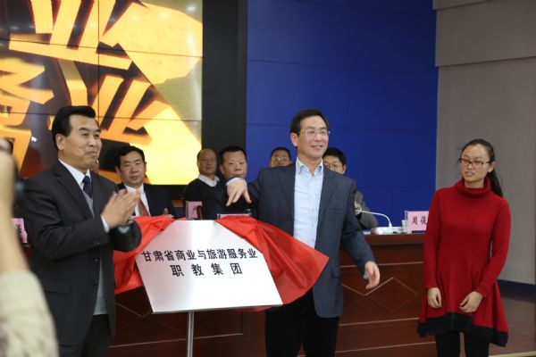 會上宣讀了甘肅省教育廳甘教職成涵[2015]31號《關于同意成立甘肅省商業與旅游服務業職教集團批復》。同時會上,通過了理事、常務理事,理事單位、常務理事單位。大會也表決通過了機構組成人員。與此同時,大會并為職業教育集團進行了揭牌儀式。