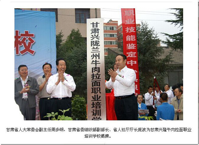 甘肅興隴蘭州牛肉拉面職業培訓學校為響應國家“大眾創業、大眾創新”號召,為推動蘭州牛肉拉面品牌規范化、職業化、產業化發展,促進城鄉勞動者實現技能成才、技能就業,政府相關部門委托我校進行全免費培訓蘭州牛肉拉面技術人才。