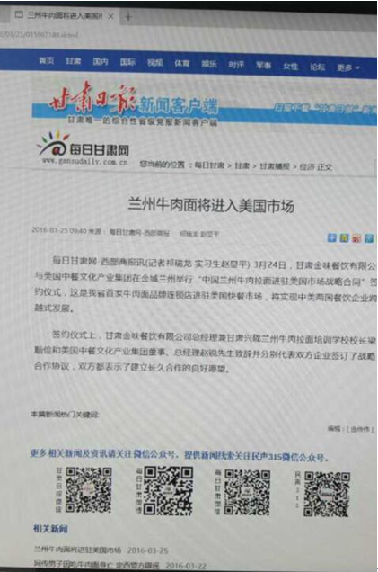 趙銳認為,任何一個中國人,無論在何時何地,都要把自己看成是一個無冕的中美文化傳播大使,主動宣傳中國文化,中餐館就是中國文化落地在全世界各地的平臺,全世界各地有30萬家中餐館,美國有5萬家中餐館,麥當勞、肯德基、漢堡三家加起來還不如中餐館多,85%的美國人認可中餐。美國人喜歡吃面食,蘭州拉面走出國門去,走到美國去,會有很好的市場。