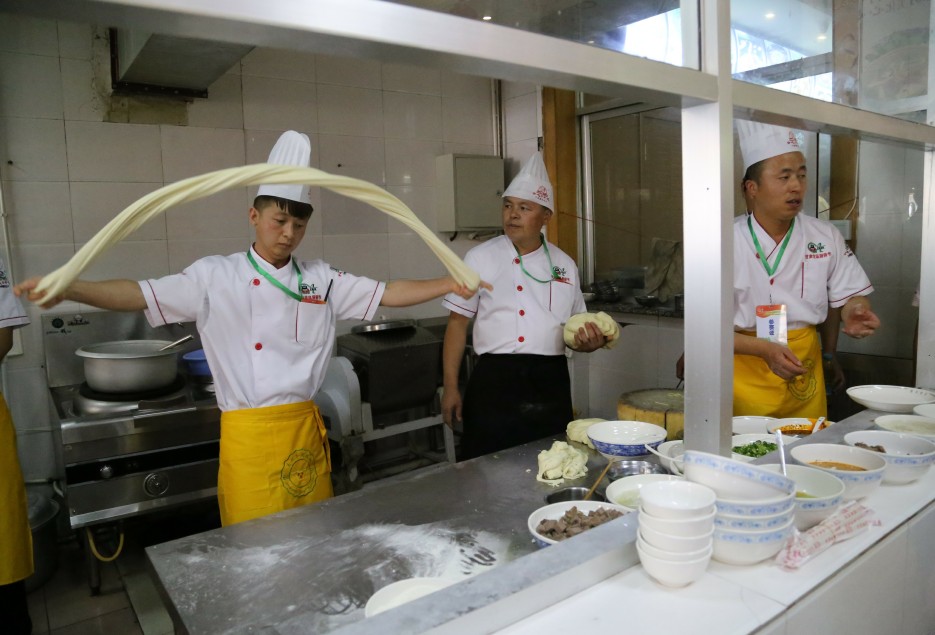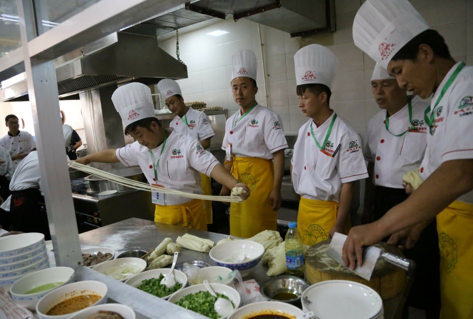牛肉面作為甘肅省的名片,名聲遠(yuǎn)播海內(nèi)外。在如此盛大的廚師節(jié)大賽上,當(dāng)然缺少不了牛肉面大比拼,各位拉面師使盡渾身解數(shù),用力的拉扯著屬于牛肉面的藝術(shù)。