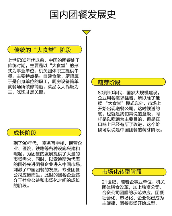 盡管市場的規(guī)模很大,但相比于國外團餐發(fā)展的速度,國內團餐還處于市場化轉型的階段。