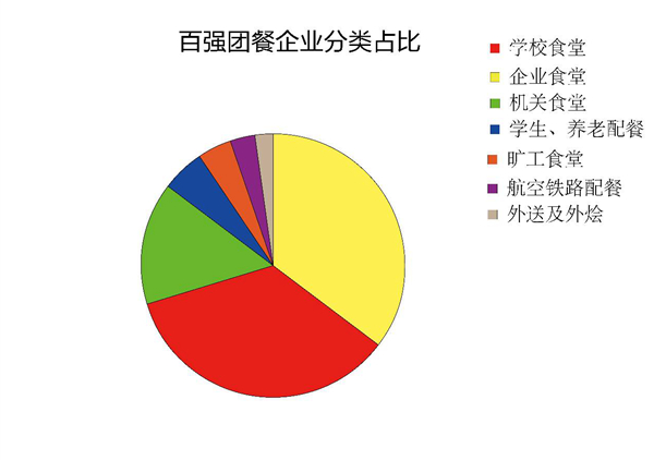 百強企業(yè)團餐主營項目分類為可分為 7 類,學校食堂占比 35.48% ,企業(yè)食堂占比 34.9% ,機關食堂占 15% ,學生營養(yǎng)餐和養(yǎng)老配餐占 5.2% ,礦工食堂 4.4% ,航空鐵路配餐占比還不到 3% ,外送及外燴最少剛剛到 2% 。團餐項目 70% 流向的還是學校以及企業(yè)。