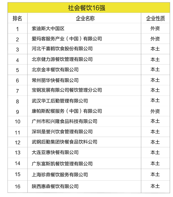 其他的市場份額就是以海外巨頭和中小型團餐企業(yè)為主。其中,國際排名前三的團餐運營商索迪斯、愛瑪客和康帕斯均已進入中國市場,以跨國企業(yè)為主要服務對象,市場份額約為 5% 。