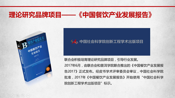 2017年餐飲產業藍皮書在謀篇布局上緊跟政策導向、聚焦產業前沿,在選題立意上圍繞熱點焦點、追求實踐價值,通過分析、探討和研判,促進政府、協會、研究機構、行業企業、餐飲院校協同聯動,共同為餐飲產業的健康發展發力。