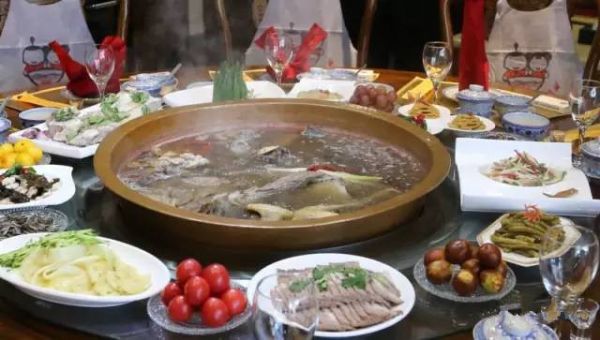 當攝制組看到桌子中間那一口金燦燦的銅鍋時,便已經深深體會到了西北人,西北美食的那一份粗獷。鍋中滾滾的熱湯湯中,包含了牛頭,牛舌,牛尾,牛腩以及牛肚等。而這每一個部位在蘭州當地人的文化中都有著不同的含義,比如牛頭就代表著“鴻運當頭”而這牛尾便代表著“節節高升”,這些有趣的含義為這段體驗之旅更添了一份色彩。