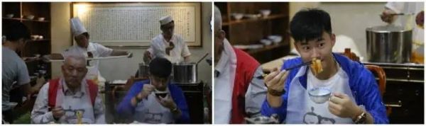 為了迎接攝制組的到來,大師傅專門為遠道而來的的客人表演拉面藝術。當大家看到那小小的面團竟在拉面師傅的手中變為一根根纖細的面條時,紛紛贊不絕口,被這神奇的拉面藝術所折服。再經過一番品嘗,他們就更忍不住想要親自試試如何做出這等筋道的拉面了。在拉面師傅的幫助下,他們體驗了一番這拉面的技藝,大家都沒有想到這看似簡單的工序下竟需要那么多的技巧。