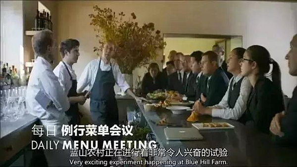 廚師在這個餐廳的工作,跟去其他米其林三星餐廳有很大不同。他們沒有菜單,每天早上要去農田里,看胡蘿卜是不是可以采摘了。食材采摘完,丹·巴伯爾就跟年輕廚師討論今天可以做什么菜,每天早上決定晚上做什么。