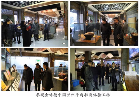 在中國(guó)蘭州牛肉拉面培訓(xùn)基地校長(zhǎng)的陪同講解下,考察團(tuán)先后參觀了甘肅興隴蘭州牛肉拉面職業(yè)培訓(xùn)學(xué)校、蘭州鑫味德牛肉面調(diào)味品廠、金味德中國(guó)蘭州牛肉拉面體驗(yàn)工坊,詳細(xì)的聽(tīng)取了蘭州牛肉拉面近年來(lái)創(chuàng)新創(chuàng)業(yè)、扶貧培訓(xùn)、解決就業(yè)及走出去等方面的發(fā)展。