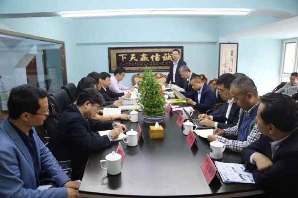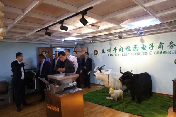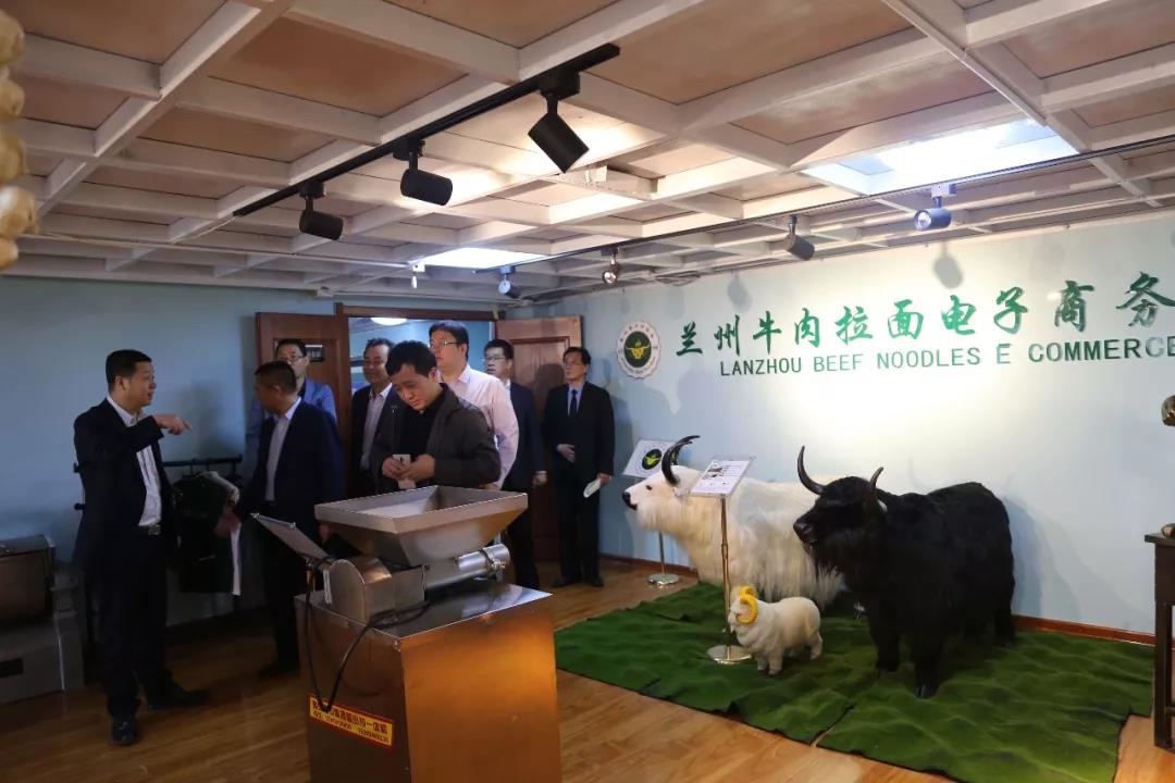 考察團隊在金味德產業集團產業鏈之一的蘭州牛肉拉面電子商務有限公司考察交流。