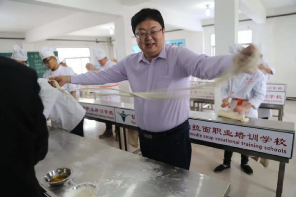 在甘肅興隴蘭州牛肉拉面職業培訓學校學員培訓基地察看了學員們的學習環境。同時元一智庫董事總經理,元一智庫連鎖中心首席顧問鐵丁還親身體驗了這指尖上的藝術——拉面。
