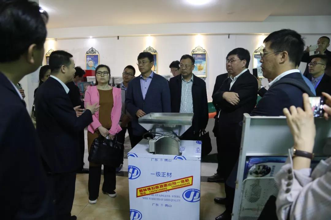 調研組在蘭州鑫味德牛肉面調味品有限公司,興隴蘭州牛肉拉面廚房設備有限公司考察參觀。同時金味德牛肉拉面產業集團董事長向調研組介紹了專利發明揉面出擠一體機,闡述了它給牛肉面行業帶來的便利。