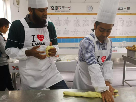 與牛肉面結下不解之緣的還有沙特青年阿齊茲(Azeez)。提起牛肉面,他豎起大拇指“點贊”。阿齊茲是蘭州大學的博士生,第一次在蘭州品嘗牛肉面后被其味道“驚艷”。現在每逢學校沒有課程安排時,他就會坐40分鐘的公交車去拉面學校找師傅學技術。“學成回國后,要和家人分享美味,還要做給沙特的朋友嘗嘗源自中國的美食。”