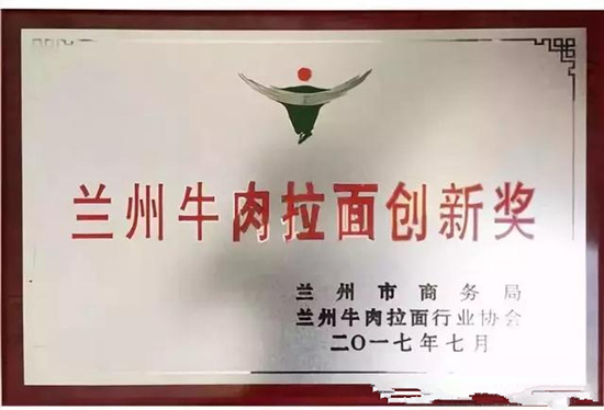 甘肅金味餐飲有限公司榮獲蘭州牛肉拉面餐飲行業創新獎