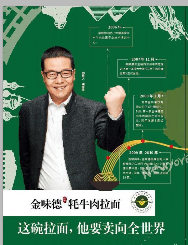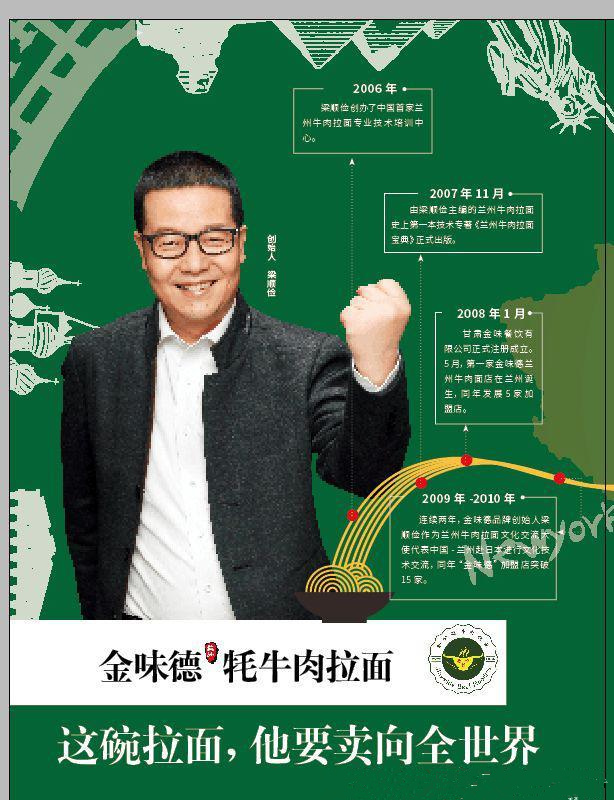 在2016年下旬推出弘揚(yáng)中國(guó)文化之蘭州牛肉拉面飲食文化,少年研學(xué)項(xiàng)目受到學(xué)校、家長(zhǎng)、小孩旅游公司的熱烈歡迎,全國(guó)餐飲企業(yè)紛紛效仿,為中式餐飲文化傳承發(fā)展做出突出貢獻(xiàn)。