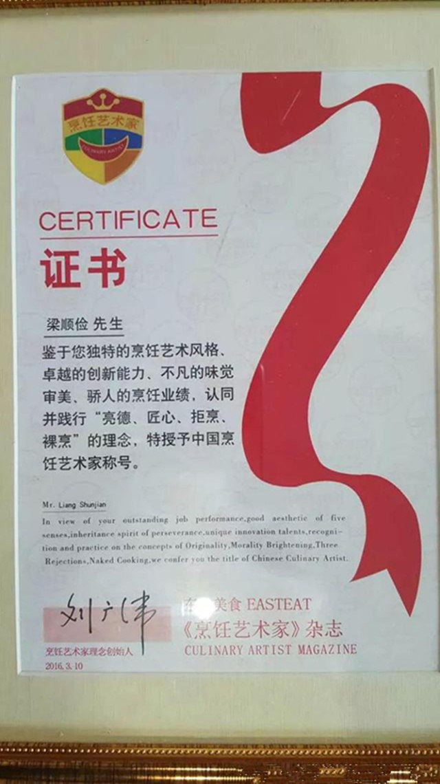 中國(guó)烹飪大師、中國(guó)行政總廚、烹飪藝術(shù)家。