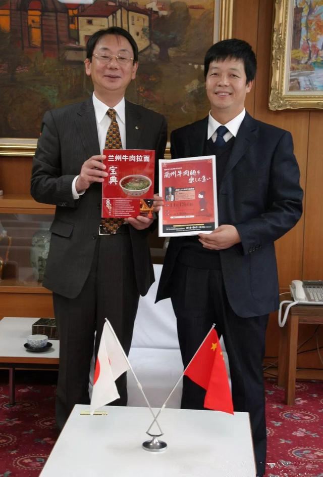梁順儉先生代表中國(guó)蘭州,前往日本進(jìn)行蘭州牛肉拉面文化技術(shù)交流,在日本秋田市政府向市長(zhǎng)穗積志贈(zèng)送了他主編的《蘭州牛肉拉面寶典》一書。