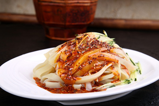 深受歡迎的蘭州小吃。用優(yōu)質(zhì)面粉精制而成,色澤晶瑩黃亮,透明如玉,調(diào)入醬油、香醋汁、蒜泥、辣椒油、芥末、精鹽等。柔韌可口,酸辣涼爽。醒味開(kāi)胃。