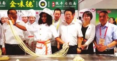 6月24日,參加2018中國面條博覽會的數十位中外嘉賓前往蘭州金味德拉面公司下屬企業、培訓學校參觀交流。當日上午,美國南加州華人華僑商會會長、北美蘭州拉面餐飲文化集團董事長應持榮同蘭州牛肉拉面行業協會會長馬利民簽訂國際友好合作協議;同蘭州金味德牛肉面文化產業集團董事長梁順儉簽訂意向性合作協議。根據協議,今年計劃在美國、加拿大、墨西哥等三國各開設一家蘭州金味德牛肉面分店,未來將開設百家分店,把蘭州牛肉面餐飲及文化傳播出去。