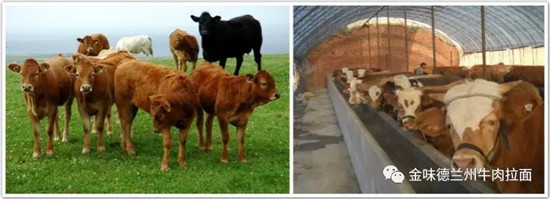 我們有啥不一樣?蘭州牛肉面里頭的牛肉,用的都是養殖的肉牛、大黃牛,熬湯這些更不用說啦,用的也都是咱們的肉牛、黃牛兄弟們。