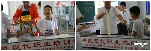 拉面體驗在甘肅興隴蘭州牛肉拉面職業培訓學校開展,學校有專業的設備、專業的拉面老師,小朋友可以在老師的指導下,粗細圓扁任意拉,拉自己喜歡的面型,盡情釋放自己的創造天性。