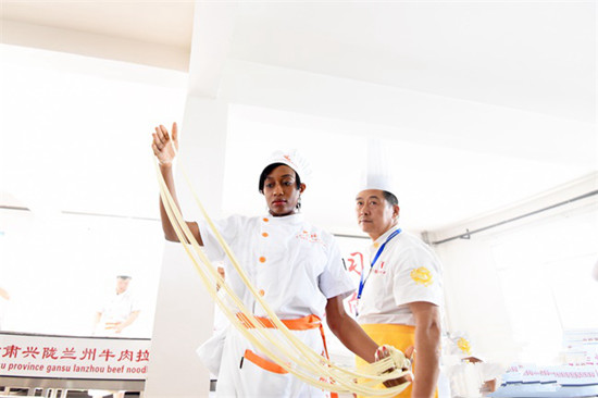 和面、揉面、拉面......標準班里,學員們動作漂亮利落,手法地道嫻熟。來自尼日利亞今年25歲的金佑琪,是標準班的一名學員。“我第一次吃牛肉面的時候,就覺得它的味道很有意思,我覺得它不僅僅是一碗面,更是一種藝術,可以說,蘭州牛肉面改變了我對中國飲食文化的認識......”,回憶起第一次吃蘭州牛肉面的場景,金佑琪感觸頗深。她還告訴記者,等學會蘭州牛肉面以后,她要在自己的家鄉(xiāng)尼日利亞開一家牛肉面館,把中國的飲食文化帶回家鄉(xiāng)。