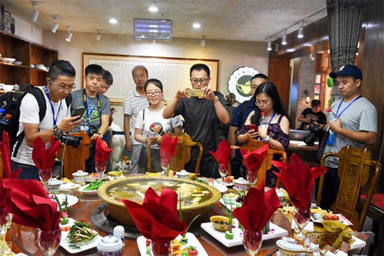 7月19日下午,由每日甘肅網和蘭州市委網信辦組織的“2018年全國重點網絡媒體、網絡大V甘肅行”采訪團走進金味德蘭州拉面文化產業集團的牛肉面博物館和體驗工坊,體驗蘭州拉面的傳統制作技藝,身臨其境地體驗蘭州牛肉面制作中的獨特魅力。