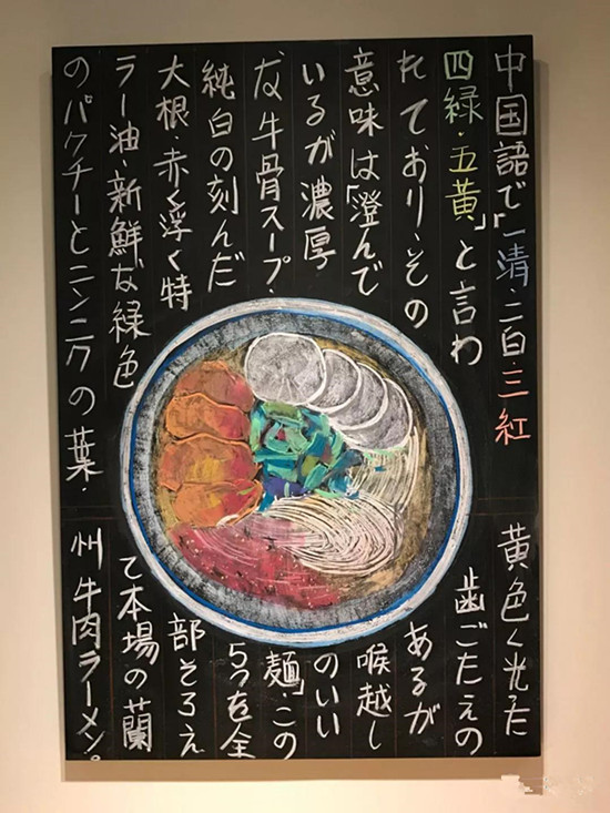 據“老蘭州”蘭州牛肉面店長楊勇奇先生介紹,“老蘭州”牛肉面店開張,最初的想法是為了圓在日本從小吃牛肉面長大的蘭州人的一個夢想,為在日華人及日本客人提供正宗的蘭州牛肉面,所有面條都是由店內的師傅手工拉成,比如在菜單上有款叫“肉蛋雙飛”的牛肉面,這款牛肉面不是在蘭州生活過的人基本上不會知道。經營模式上不釆用純商業運作,而是將老味道、古文化、純鄉情融入到每一碗牛肉面中,讓在日本的蘭州人感覺到家的味道,并邀請在日華人敦煌研究家張源之老師用了一個多星期的時間,將甘肅從敦煌到天水間的名勝,用八米長的壁畫形式展示在店內的墻壁上,讓來店的每一位體驗到敦煌文化的博大精深。