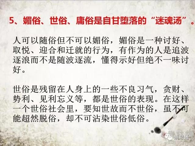 5、媚俗、世俗、庸俗是自甘墮落的“迷魂湯”。