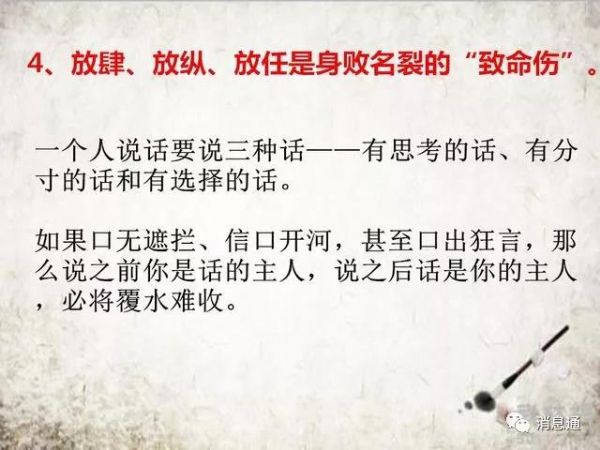4、放肆、放縱、放任是身敗名裂的“致命傷”。