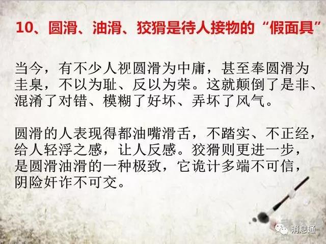 10、圓滑、油滑、狡猾是待人接物的“假面具”。