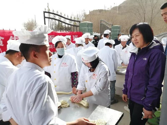 3月21日由甘肅省人力資源和社會保障廳副廳長王麗萍帶隊,赴甘肅省臨夏州各縣鄉(xiāng)進行工作督導檢查,并前往東鄉(xiāng)縣北嶺鄉(xiāng)倉房村巡視由甘肅省教育廳主辦,東鄉(xiāng)縣人社局協辦,蘭州興隴現代職業(yè)培訓學校承辦的牛肉拉面精準扶貧培訓班,王副廳長在培訓現場親切問詢學員的學習情況,與學校負責人溝通培訓項目實施中的疑難問題,并提出“扶貧需精準,扶技更需精準。她談到,扶貧工作一定要密切聯系貧困縣的實際,著力在“精準”二字上做文章、出實招、求突破,通過技能培訓促扶貧取得了實效。看到學員們學習興趣濃厚,對掌握拉面技術表現出的信心,王副廳長對培訓工作予以了肯定,并希望這樣的技能培訓越辦越好,越辦越多,越辦越深入,齊心協力打好、打贏脫貧攻堅戰(zhàn)。