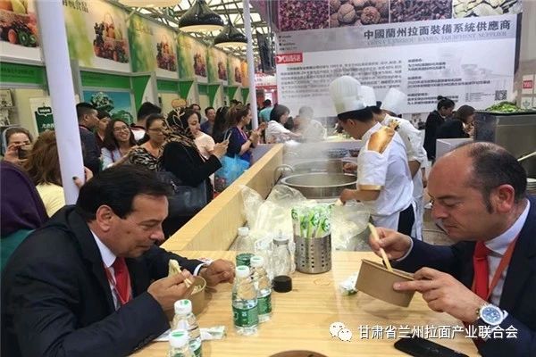 4月8日(展會第一天):主要進行蘭州牛肉拉面的制作工藝展示,分為早中晚三次現(xiàn)場進行蘭州牛肉拉面各種工藝的演示。并且在中午,將蘭州牛肉拉面與西班牙、意大利的面醬進行結(jié)合,現(xiàn)場品嘗“中西結(jié)合”的醬拌面。