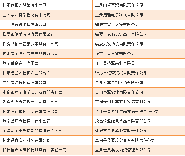 參加2019西班牙展會的甘肅省企業(yè)名錄