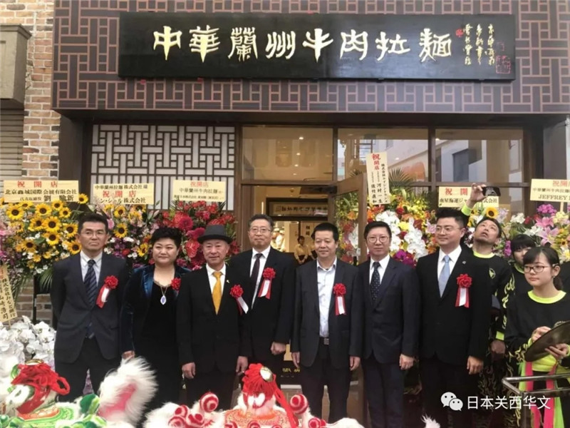 當天,包括中華蘭州拉面株式會社社長康主恩,甘肅省商務廳特派專員、蘭州牛肉拉面國際聯盟主席梁順儉,國際飲食養生研究會副會長侯同明,日神通商株式會社社長田國輝,以及中國駐大阪總領館商務室負責人孫淑強、日中經貿中心常務理事池田稔兩位重要嘉賓齊聚現場,共同參加了神戶首家“中華蘭州牛肉拉面”的開業慶典。日本《關西華文時報》總編輯叢中笑也應邀參加了儀式。