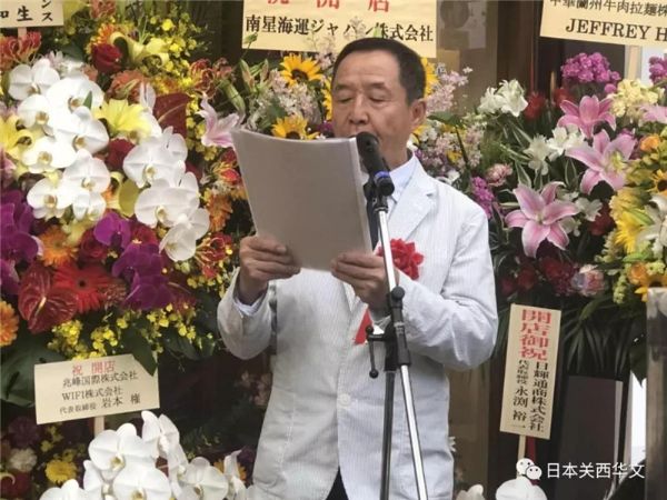 創辦人、中華蘭州拉面株式會社社長康主恩首先致辭。他表示:蘭州牛肉拉面作為中國甘肅省非物質文化遺產,近年來在甘肅省政府和中國蘭州牛肉拉面國際聯盟的大力推廣和協力下,已經走向世界。作為在日本的華人深感自豪和負有責任。特別是去年經中國駐大阪總領事館孫淑強領事和甘肅省商務廳張應華廳長的大力倡導下,覺得應該為中日間的文化交流盡綿薄之力。拉面在日本深受歡迎和喜愛,日本更是面條創新和研發方面的先行者,蘭州牛肉拉面必將在日本有更多更好的推廣和發展空間。為此我們以匠心為己任,用心做好一碗面為己任,以神戶牛骨,精選和牛肉,天然布引水為料,用百年蘭州拉面的調味料絕密配方,而精心調制出的牛肉湯,再以手工拉制9種面條,以一清二白三紅四綠五黃為特色的蘭州牛肉拉面呈現給日本大眾,在食拉面過程中,再配以高級胡椒粉和陳年老醋或檸檬汁,食出不同于傳統的日本拉面的風味。
