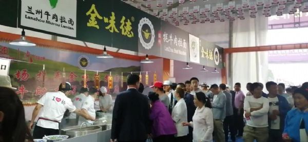 金味德牦牛肉拉面,以肉爛湯鮮、面質精細而蜚聲中外,傳遍全中國各地,贏得了國內乃至全世界范圍內食客的好評和榮譽。在會場展廳內,依舊門庭若市,大排長龍。