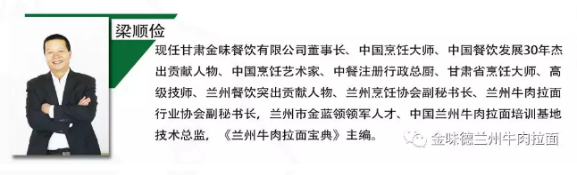由金味德拉面連鎖機構研制的“鑫味德”牌蘭州牛肉拉面專用湯料,是由多位從事蘭州牛肉拉面技術及研究工作的行業專家、學者經過多年的研究,在繼承傳統蘭州牛肉拉面調料的基礎上,結合現代快餐經營理念,通過科學搭配實現了蘭州牛肉拉面調湯料、煮肉料、辣椒粉、辣椒油等將各種調味料的標準化,攻破了蘭州牛肉拉面發展百年以來一出蘭州就變味的難題。