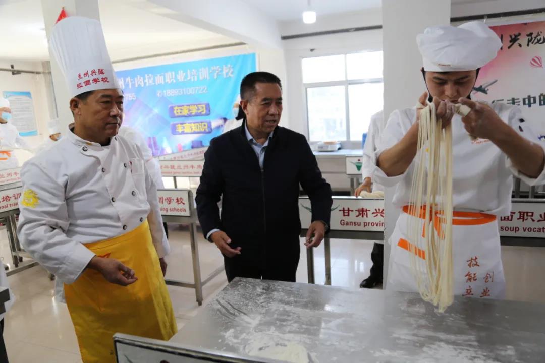 “蘭州牛肉拉面行業協會積極帶領會員單位助力脫貧攻堅,推進行業扶貧與產業帶動相結合,用‘拉面經濟’助力精準扶貧。興隴蘭州牛肉拉面職業培訓學校正是會員單位成立的培訓機構,在培訓貧困戶就業和帶動脫貧致富方面發揮了重要作用!瘪R利民說。