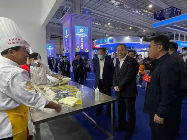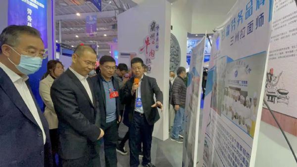 人社部副部長在甘肅省人社廳領導陪同下考察甘肅勞務品牌展廳,參觀中國勞務品牌甘肅蘭州拉面師展位