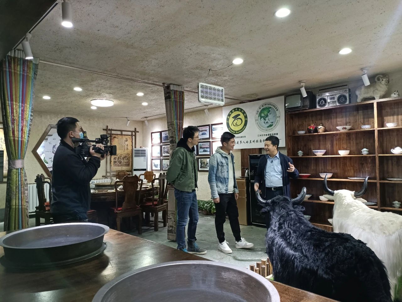 央視直播組來到中國(guó)蘭州牛肉拉面體驗(yàn)工坊直播蘭州牛肉拉面文化。
