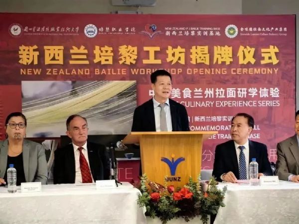 2023年,利用金味德國內外市場資源,在新西蘭、英國、美國、加拿大開始啟動了海外中華飲食文化技術研學體驗工坊,面向海外的大、中、小學和普通大眾研學體驗蘭州拉面文化藝術、與海外職業院校合作、開展短期蘭州拉面烹飪職業技能培訓,服務海外蘭州拉面企業更好、更快發展,海外“中華飲食文化技術研學體驗工坊”,簡稱“蘭州拉面培黎工坊”,以文旅研學體驗、產教融合的方式,開啟“蘭州拉面師”職業帶動產業國際化發展新模式,也更快速的讓國內外了解牛肉面文化。