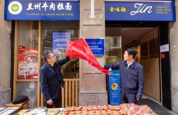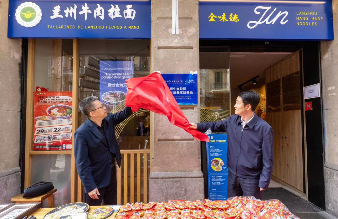 當地時間2025年4月3日,“甘味出海·蘭州牛肉拉面——甘肅非遺文化主題活動日”在金味德蘭州牛肉拉面巴塞羅那總店(Carrer d'Aribau,39號)隆重開幕。